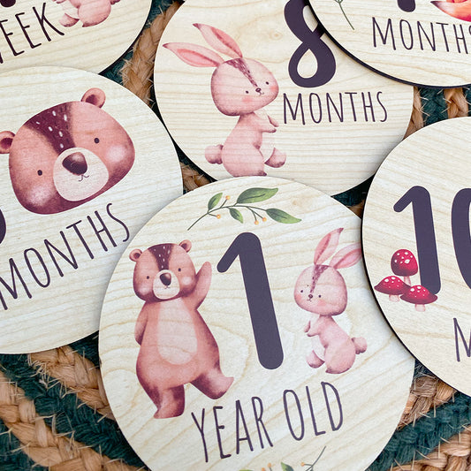Wooden Baby Monthly Milestone Cards with Announcement Sign
