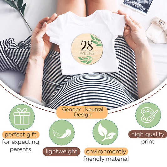 Wooden Pregnancy Milestone Cards - Green Leaves