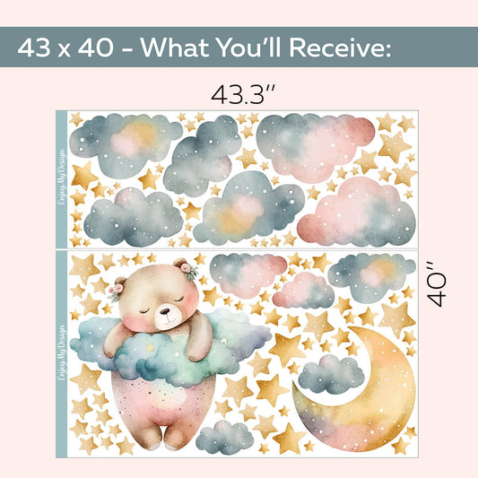Kids Wall Decal Cute Sleepy Bear Wall Sticker