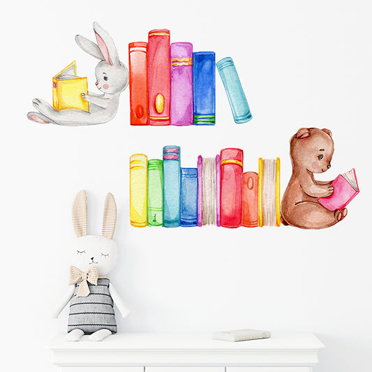 Kids Wall Sticker Animals with Books Wall Decal Set